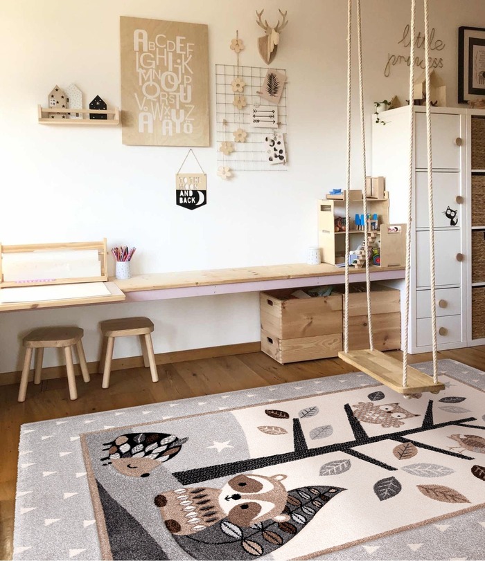 Материалът на килима е от съществено значение, когато става дума за детска стая. Той трябва да бъде безопасен и щадящ здравето на най-малките, така че потърсете: