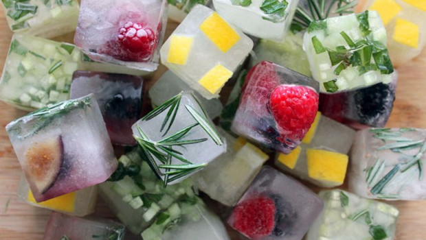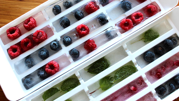 Плодове и мента за лятното парти – може да замразите дребни плодове като ягоди, малини, боровинки или пък нарязани на парчета цитруси с листенца мента. Получава се чудесна добавка към коктейлите.